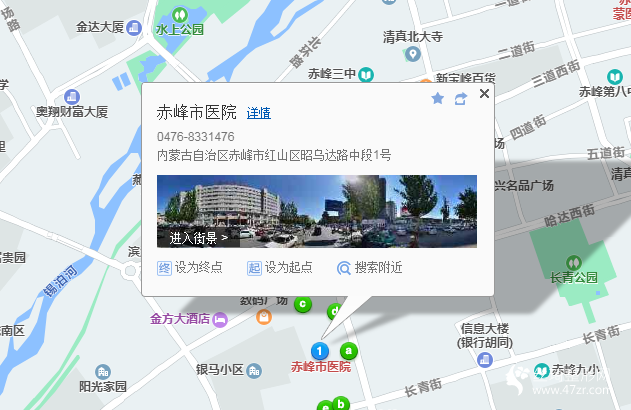 赤峰南站120米向西北步行 到 火車站6站乘 7路 (赤峰二中方向) 到 市醫(yī)院20米向西步行 到 赤峰市醫(yī)院