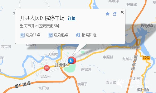 開縣中心客運(yùn)站250米向西南步行 到 中心客運(yùn)站7站乘 開州3路 (調(diào)節(jié)壩站方向) 到 南山百成路站280米向西北步行 到 開縣人民醫(yī)院