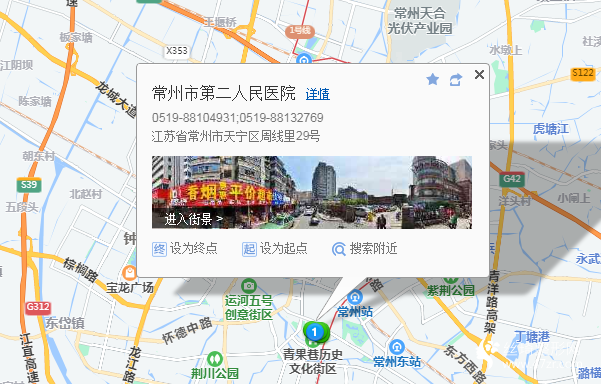 常州站330米向西南步行 到 新豐橋南3站乘 2路 (滆湖路花園街(滆湖路公交站)方向) 或 38路 14路 到 青果巷580米向北步行 到 常州第二人民醫(yī)院