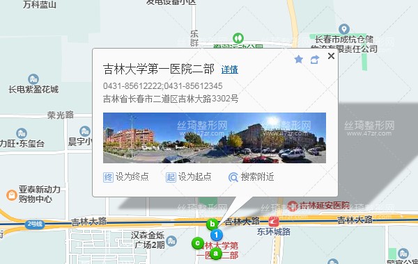長春客運中心站70米向南步行 到 長江路16站乘 361路B線 (凱利中心方向) 或G361路 到 樂群街70米向西步行 到 吉林大學第一醫(yī)院二部