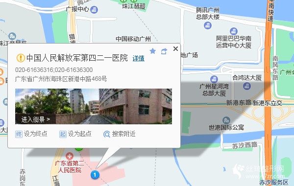 海珠區(qū)1公里向東南步行 到 廣州大道南路口4站乘 583路 (員村一橫路總站方向) 或779路 到 江海大道中460米向東北步行 到 中國人民解放軍第四二一醫(yī)院