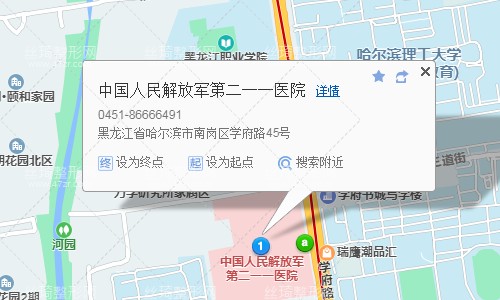 哈爾濱站320米向北步行 到 哈站北廣場(chǎng)(霽虹街)2站乘 110路環(huán)線 (哈站方向) 到 省博覽中心24米站內(nèi)換乘 31路11站乘 31路 (哈西站東廣場(chǎng)方向) 或 104路 11路 到 黑龍江大學(xué)190米向西南步行 到 中國(guó)人民解放軍第二一一醫(yī)院