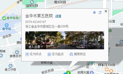 金華南站640米向西北步行 到 火車南站17站乘 528路 (金華火車站方向) 到 市農(nóng)行840米向西南步行 到 金華市第五醫(yī)院