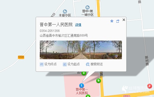 晉中站240米向西南步行 到 高鐵晉中站13站乘 201路 (公交公司方向) 到 中國銀行210米向東步行 到 中國銀行9站乘 801路 (公交太谷分公司方向) 到 晉中一院新址東門100米向西南步行 到 晉中第一人民醫(yī)院