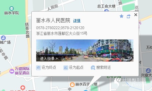 麗水站240米向西北步行 到 高鐵站10站乘 6路 (麗水學(xué)院方向) 到 市人民醫(yī)院80米向西步行 到 麗水市人民醫(yī)院