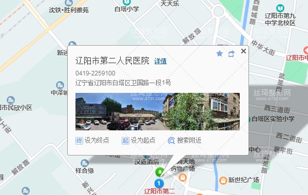遼陽市中心客運站70米向西南步行 到 站前6站乘 3路 (技師學院方向) 到 永興佳城550米向東北步行 到 遼陽市第二人民醫(yī)院整形科