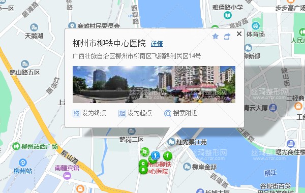 柳州南站2.7公里向東北步行 到 華柳佳苑6站乘 33路 (永前五區(qū)方向) 到 延安大酒店汽車南站商700米向東北步行 到 柳州市柳鐵中心醫(yī)院