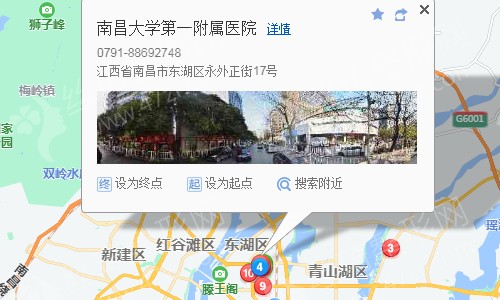 南昌站300米向北步行 到 南昌火車站 出入口進(jìn)站5站乘 地鐵2號線 (南路方向) 到 青山路口 2口 出站920米向東步行 到 南昌大學(xué)第一附屬醫(yī)院,