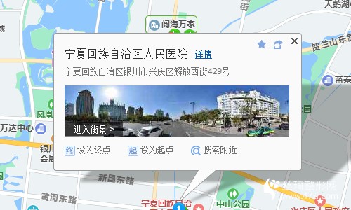 銀川站330米向東南步行 到 銀川火車站7站乘 301路 (賀蘭總站方向) 到 寧夏博物館7站乘 2路 (銀川市民大廳東方向) 到 寧夏人民醫(yī)院140米向南步行 到 寧夏人民醫(yī)院