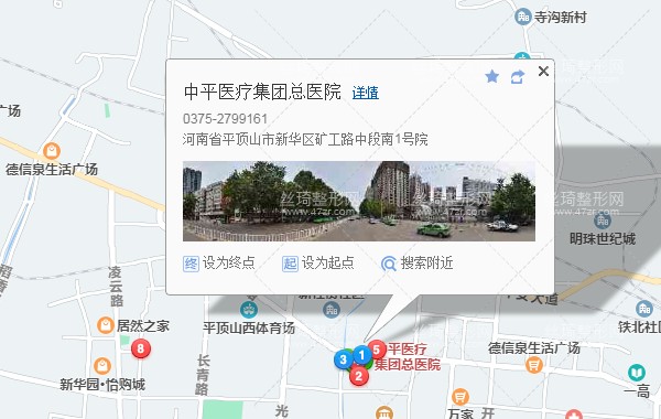 平頂山汽車站20米向北步行 到 客運中心站(新站)5站乘 24路區(qū)間 (公交三公司方向) 或 1路 到 平煤總醫(yī)院170米向西南步行 到 平煤神馬醫(yī)療集團總醫(yī)院