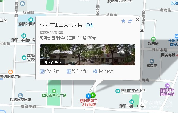濮陽市長途汽車站90米向南步行 到 長途車站5站乘 12路 (溫泉花園方向) 到 第三醫(yī)院4米向南步行 到 濮陽市第三人民醫(yī)院