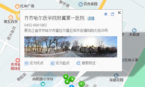 齊齊哈爾站350米向西北步行 到 火車站13站乘 111路 (齊市民航機場方向) 到 市中醫(yī)院南院150米向東步行 到 北疆集團3站乘 301路 (富區(qū)零公里方向) 到 食品630米向西南步行 到 齊齊哈爾醫(yī)學院第一附屬醫(yī)院