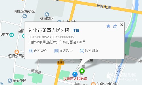 汝州汽車站110米向東南步行 到 汝州長途汽車站4站乘 登封-汝州 (登封客運(yùn)總站方向) 到 朝陽路口620米向東步行 到 汝州市第四人民醫(yī)院