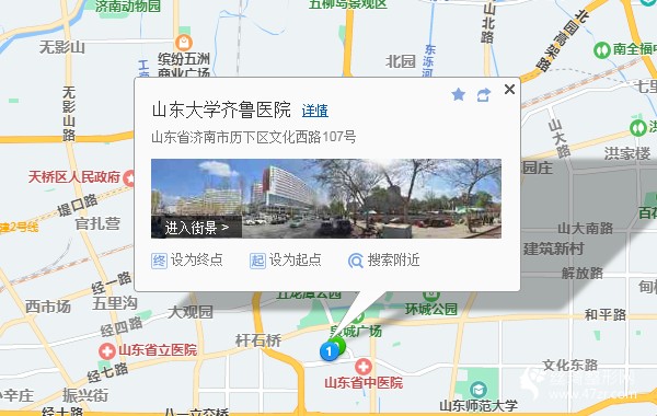 濟(jì)南站100米向東北步行 到 濟(jì)南站5站乘 K51路 (環(huán)山小區(qū)方向) 到 趵突泉東門520米向南步行 到 山東大學(xué)齊魯醫(yī)院
