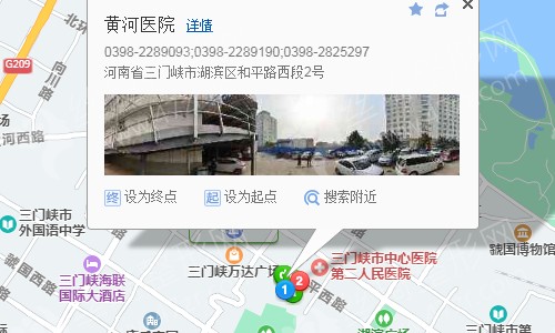 三門峽站160米向西南步行 到 火車站9站乘 1路 (陜州公園方向) 到 市二中440米向西南步行 到 黃河醫(yī)院