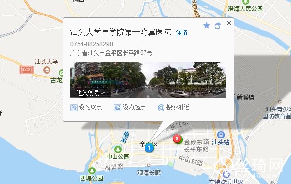 汕頭汽車客運中心站110米向東步行 到 客運中心9站乘 123路 (貴嶼汽車客運站方向) 到 汕大附一醫(yī)院30米向南步行 到 汕頭大學醫(yī)學院第一附屬醫(yī)院
