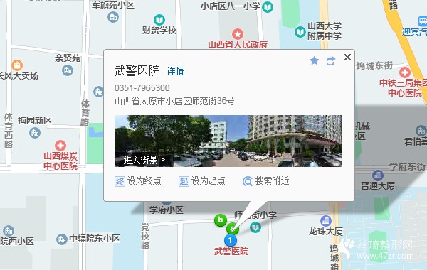 太原汽車站740米向西南步行 到 廣場(西)11站乘 103路 (南中環(huán)太榆路口方向) 或870路 到 塢城路學府街口640米向西步行 到 山西武警總醫(yī)院醫(yī)學整形美容中心