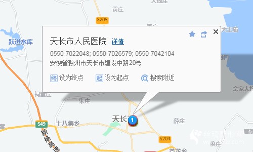 天長汽車客運中心130米向西步行 到 天長新車站3站乘 天長-便益 (便益方向) 或 天長216路 到 天長候機樓6米向東步行 到 天長市候機樓4站乘 天長102路 (銅城客運站方向) 或天長4路 到 東門醫(yī)院60米向西步行 到 天長市人民醫(yī)院
