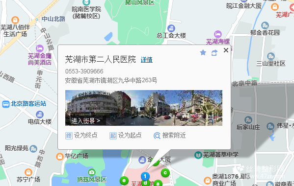 蕪湖站830米向西南步行 到 民生銀行蕪湖分行4站乘 113路(晚) (峨山東路北方向) 到 第二人民醫(yī)院50米向西北步行 到 蕪湖市第二人民醫(yī)院