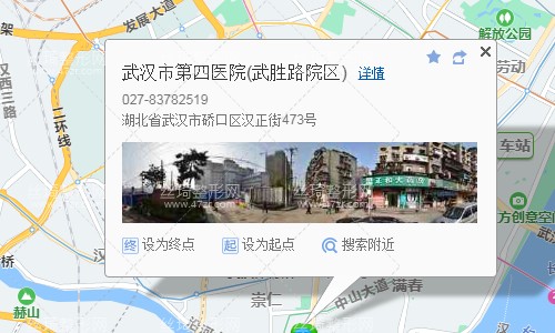 武漢站60米向東北步行 到 武漢火車站 西入口進站18站乘 軌道交通4號線 (柏林方向) 到 鐘家村 E2口 出站2.1公里向北步行 到 武漢市第四醫(yī)院