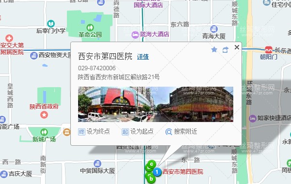 西安市第四醫(yī)院與新城區(qū)解放路,是在1889年建立的一所綜合性三甲醫(yī)院,同時也是西安市的醫(yī)保定點醫(yī)院,醫(yī)院及醫(yī)療康復和保健等多功能于一體,先后設(shè)立了很多各臨床科室,并配備了國內(nèi)外各種先進的診療設(shè)備,專業(yè)的醫(yī)生可以在這些先進醫(yī)療設(shè)備的保障之下,來為每一位受術(shù)者實施醫(yī)療美容項目,因此在西安地區(qū)建立了比較高的知名度。