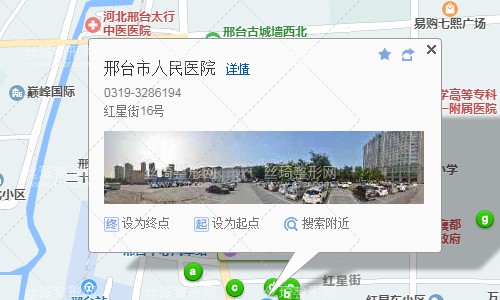 邢臺東站320米向東步行 到 邢臺東站20站乘 42路 (火車站方向) 到 人民醫(yī)院310米向北步行 到 邢臺市人民醫(yī)院