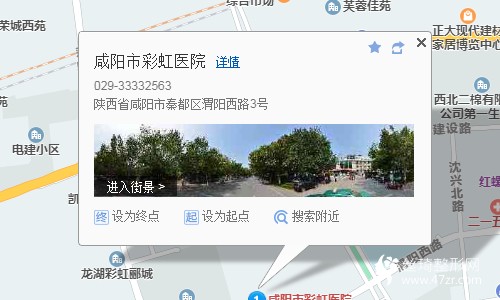 咸陽站160米向東南步行 到 火車站11站乘 16路 (兩寺渡公園方向) 到 陜中附院260米向西步行 到 咸陽市彩虹醫(yī)院