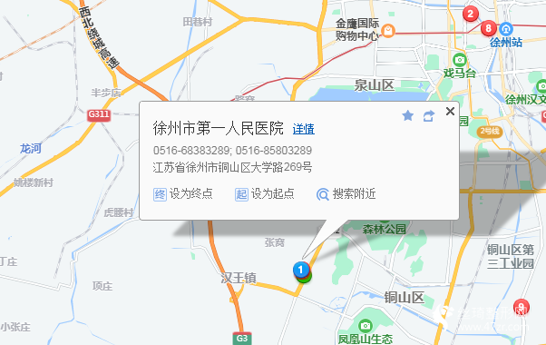 徐州站240米向北步行 到 徐州站2站乘 11路大站快車 (銅山新區(qū)總站方向) 到 中央百大13站乘 63路 (銅山新區(qū)總站方向) 到 楓林天下250米向西南步行 到 徐州市第一人民醫(yī)院
