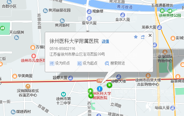 徐州站460米向南步行 到 徐州火車站 5口 進站3站乘 地鐵1號線 (路窩方向) 到 徐醫(yī)附院 1口 出站390米向西南步行 到 徐州醫(yī)科大學附屬醫(yī)院