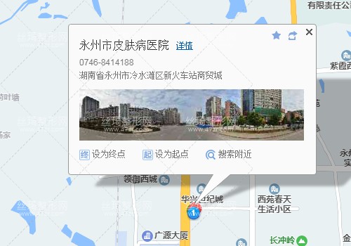 永州站220米向東南步行 到 永州火車站1站乘 10路專線 (永州植物園方向) 到 冷水灘皮膚醫(yī)院70米向東北步行 到 永州市皮膚病醫(yī)院,