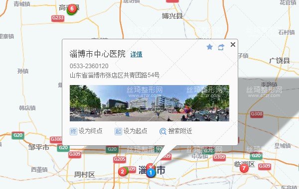 淄博站340米向東步行 到 火車站4站乘 58路 (淄博北站方向) 或 139路127路 到 市中心醫(yī)院30米向西步行 到 淄博市中心醫(yī)院,