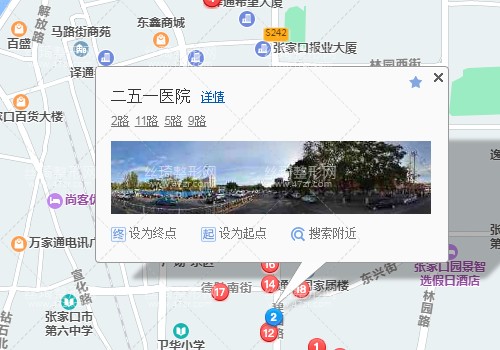 張家口站450米向東南步行 到 張家口站17站乘 11路 (職教中心方向) 到 二五一醫(yī)院170米向南步行 到 中國人民解放軍第251醫(yī)院。