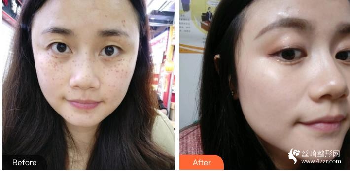臉上結(jié)的小痂痂終于都掉了,皮膚變白一個(gè)度,現(xiàn)在各位寶寶們看看我的臉,請(qǐng)忘記前兩天的樣子,不仔細(xì)看的話,幾乎看不到斑的,當(dāng)然,非要貼近看,還是有點(diǎn)淡淡的顏色。畢竟才做過一次,這樣已經(jīng)很好了。等滿了一個(gè)月就繼續(xù)去做下一次了。沒有斑看著臉上白白凈凈的,素顏看起來也這么舒服。