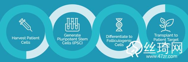 首先,獲取患者的普通細(xì)胞,然后使用 iPS 技術(shù),產(chǎn)生人工誘導(dǎo)多能,再將這些特異性分化成形成毛囊所需的毛囊細(xì)胞。將這些細(xì)胞移植到皮膚下,進(jìn)而產(chǎn)生毛囊,并長(zhǎng)出毛發(fā)。