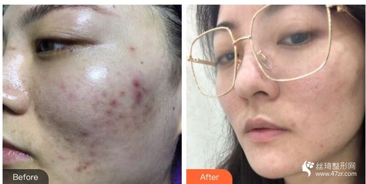 這是剛做完的果 不腫不癢 做的過程中也沒有痛感 可就是有點微紅所以看著痘痘相對于比作之前好一點了 哈哈哈 感覺自己白了一點 毛孔也小了 醫(yī)生說個幾天就可以看出來果了 坐等哦 期待