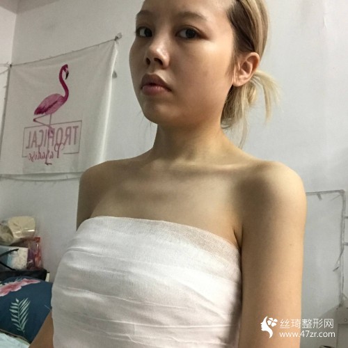 術(shù)后3天:胸部纏著滿滿的紗布,讓我感覺(jué)特別的不舒服,但是現(xiàn)在在恢復(fù)期,這樣才可以更好的恢復(fù),雖然纏著紗布看不見(jiàn),整體的狀況可以感覺(jué)到比之前變高挺了一些。