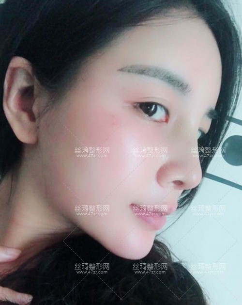 這是恢復(fù)一個(gè)月的照片吧,做完手術(shù)一周左右的時(shí)間大概我就上班了,說(shuō)實(shí)話一直挺忙的,身邊好多同事都夸我鼻子做的真好看,還問(wèn)我做了多久了,現(xiàn)在的鼻子的弧度我可以說(shuō)是很滿意了,只是山根有點(diǎn)腫,因?yàn)槲沂堑诙问中g(shù),恢復(fù)大概可能會(huì)慢一點(diǎn),這都是我能夠忍受的,等幾天去醫(yī)院復(fù)查,我還是要特別感謝為我做手術(shù)的醫(yī)生哦。