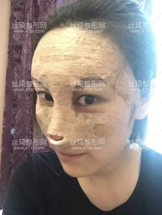 現(xiàn)在臉上包得挺嚴(yán)實的,鼻子的輪廓已經(jīng)能窺見了,還挺不錯的~~現(xiàn)在進食不方便,需要用棉簽去蘸水,涂在在嘴唇上,防止干燥~~現(xiàn)在就等著拆紗布和線了~恢復(fù)期應(yīng)該很漫長,需要耐心等待啊。