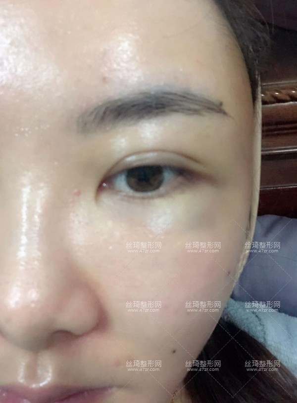 給大家近距離看一下我現(xiàn)在的狀態(tài),眼睛周圍有一些於青,依然很腫。我有些害怕了,就趕緊問了醫(yī)生。醫(yī)生說這是正?,F(xiàn)象,不要著急,恢復(fù)都是有個過程的,不要隨意揉捏面部。聽了醫(yī)生的話了心里一下子就松了,主要是之前看過失敗的案例,有點怕。